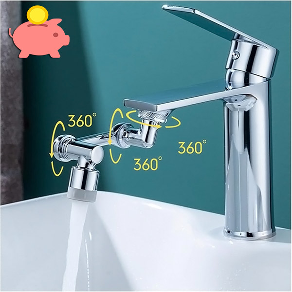Łatwe dotarcie do każdego rogu zlewu dzięki pełnemu obrotowi o 1080°, idealnemu do mycia twarzy, płukania naczyń lub czyszczenia zlewu.