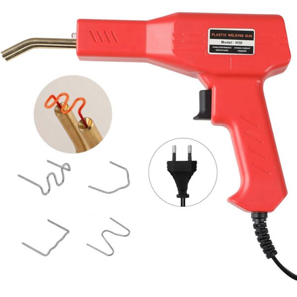 Wraz z narzędziem spawalniczym w zestawie znajdują się również szczypce, nóż i 200 zszywek różnej wielkości w poręcznej torbie. Te zszywki zostały zaprojektowane tak, aby były trwałe i odporne zarówno na ciepło, jak i wodę, co umożliwia bardzo długie korzystanie z nich.