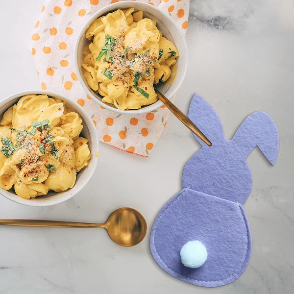 Uczyń wielkanocne posiłki wyjątkowymi dzięki uroczym uchwytom na sztućce w kształcie zajączków, które wprowadzą ciepło i radość na Twój stół.