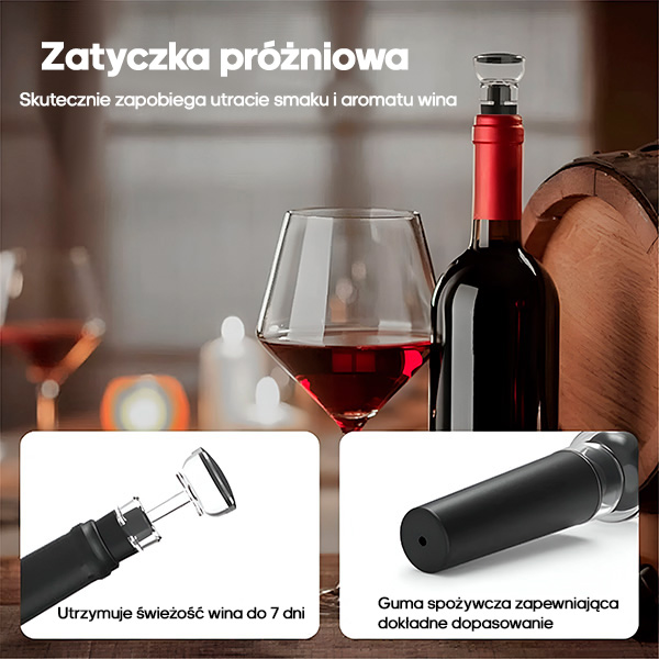 🔒 Korek próżniowy utrzymuje otwarte wino świeże przez wiele dni