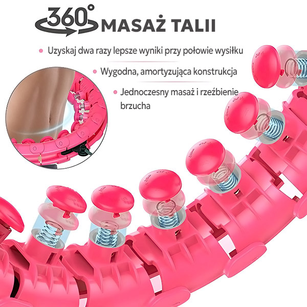 Dzięki magnetycznym segmentom łączącym i głowicom masującym 360° hula hop pozostaje bezpiecznie na swoim miejscu, co czyni go idealnym narzędziem fitness nawet dla początkujących.