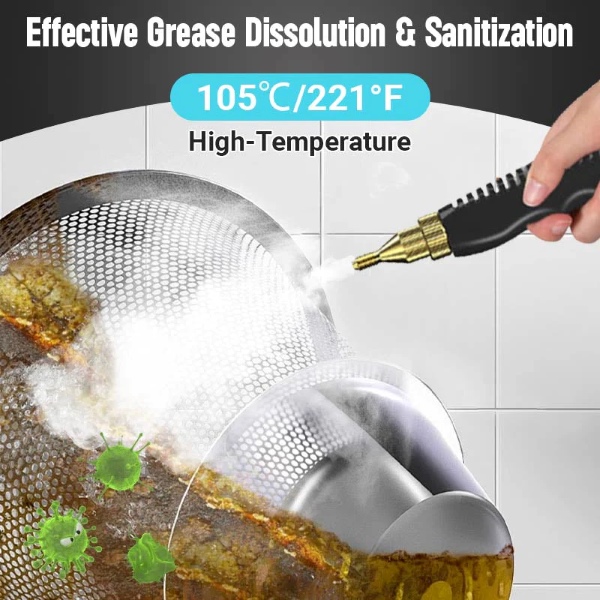 Moc znamionowa 2500W wytwarza parę o temperaturze do 105℃ w mniej niż 10 sekund, usuwając tłuszcz, brud, kurz i plamy z różnych powierzchni w krótkim czasie.