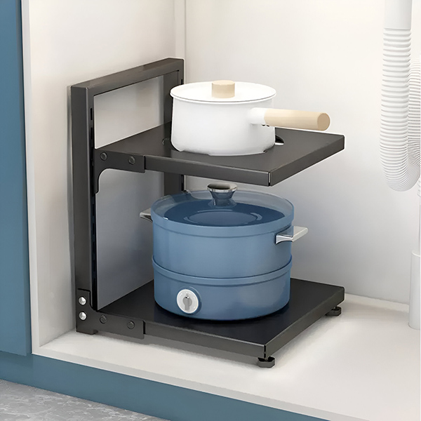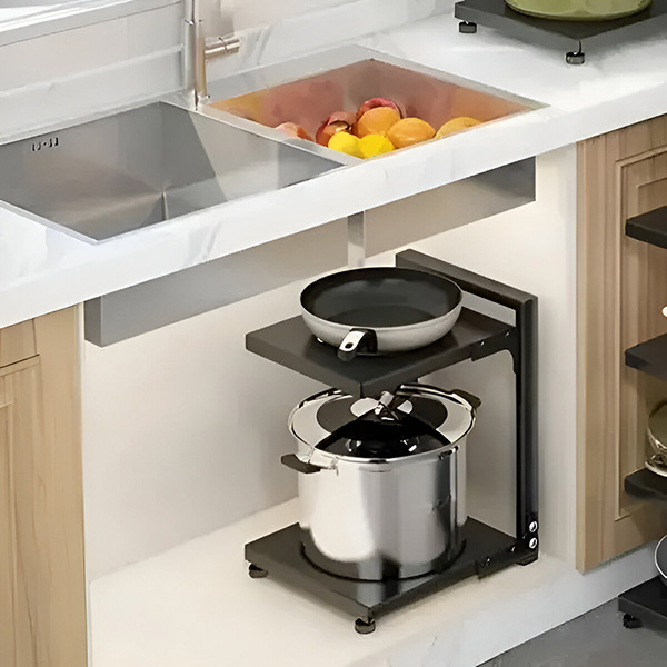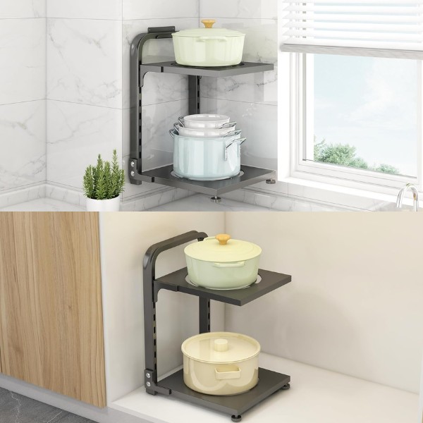 Zorganizuj Swoją Kuchnię z Łatwością! Ten Stojak na Garnki z dwiema półkami jest idealny do każdej szafki i stanowi idealne rozwiązanie dla uporządkowanej kuchni.