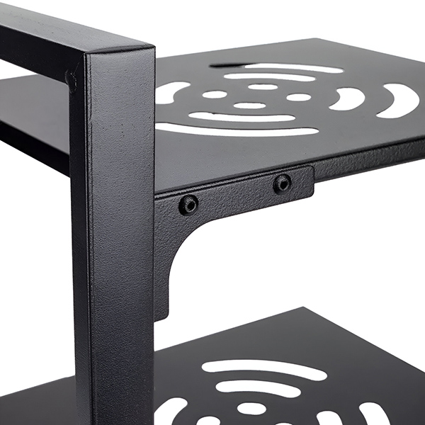 Stojak jest wykonany z najwyższej jakości stali, zapewniając zarówno stabilność, jak i trwałość.