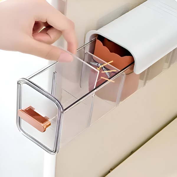 Przechowuj przyprawy, przybory kuchenne lub małe narzędzia w tych przezroczystych organizerach z bezpiecznymi pokrywkami, które chronią przedmioty kuchenne przed kurzem. Zamontuj je wewnątrz szafek lub na ścianach, aby uzyskać wygodny dostęp, dzięki czemu przygotowywanie posiłków będzie szybsze i bardziej wydajne.