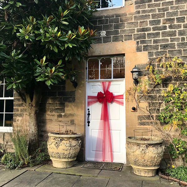 Udekoruj swoje drzwi naszą luksusową dekoracyjną kokardą. Dzięki wstążce o długości 750 cm możesz nadać swoim drzwiom wejściowym piękny świąteczny wygląd. Niezależnie od tego, czy jest to Boże Narodzenie, wesele czy baby shower, RUBYBOW uświetni uroczystość.