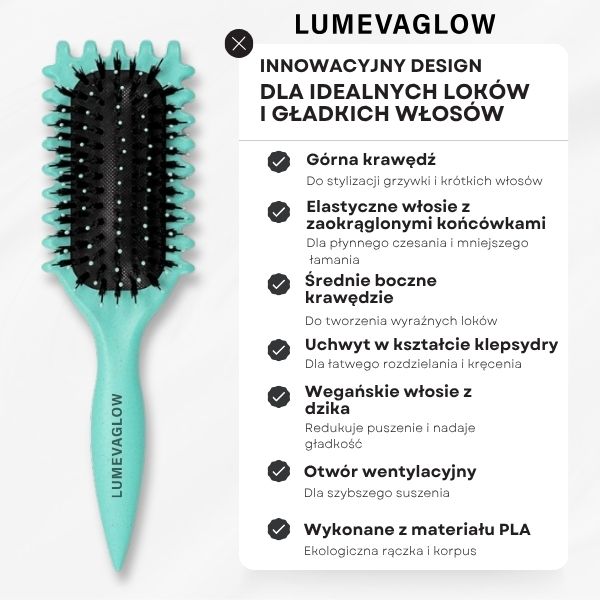 Nasza szczotka wygładza każde pasmo, zapewniając wyraziste loki bez puszenia się przez cały dzień.