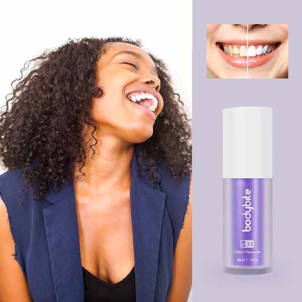 Stworzone, aby być delikatnym i nieściernym, V34 nadaje się do regularnego stosowania jako część rutyny higieny jamy ustnej. Efekt korekcji koloru został zaprojektowany specjalnie dla naturalnego szkliwa i nie zmieni odcienia licówek, koron, implantów, mostów ani zębów odbudowanych. W celu uzyskania spersonalizowanej porady zalecamy konsultację z dentystą przed użyciem.