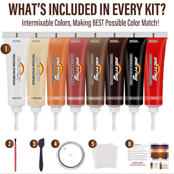 Łatwo napraw zarysowania od zwierząt, przecięcia, przypalenia, zużycie, blaknięcie i pęknięcia na powierzchniach skórzanych.