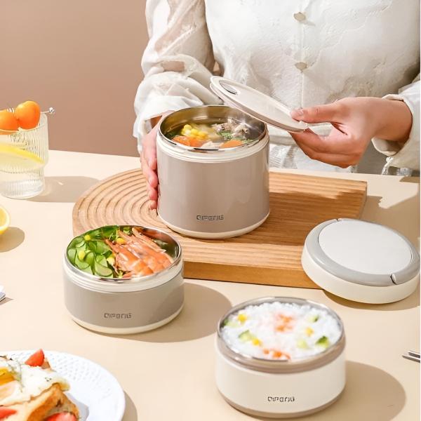 🥡 Ten wielowarstwowy zestaw pojemników na żywność utrzymuje ciepło ulubionych potraw do 4 godzin.